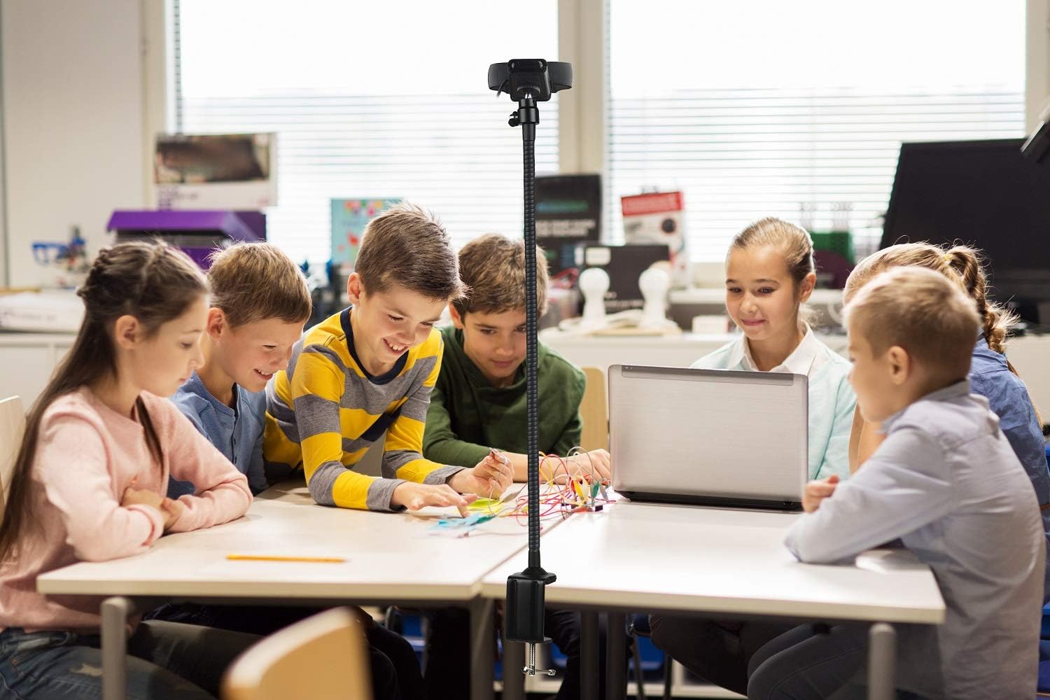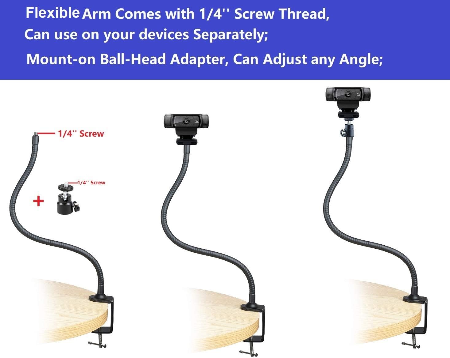 – El brazo flexible de 25 pulgadas permite ajustar fácilmente la cámara web a diferentes ángulos, lo que mejora la versatilidad en la captura de imágenes y vídeos.