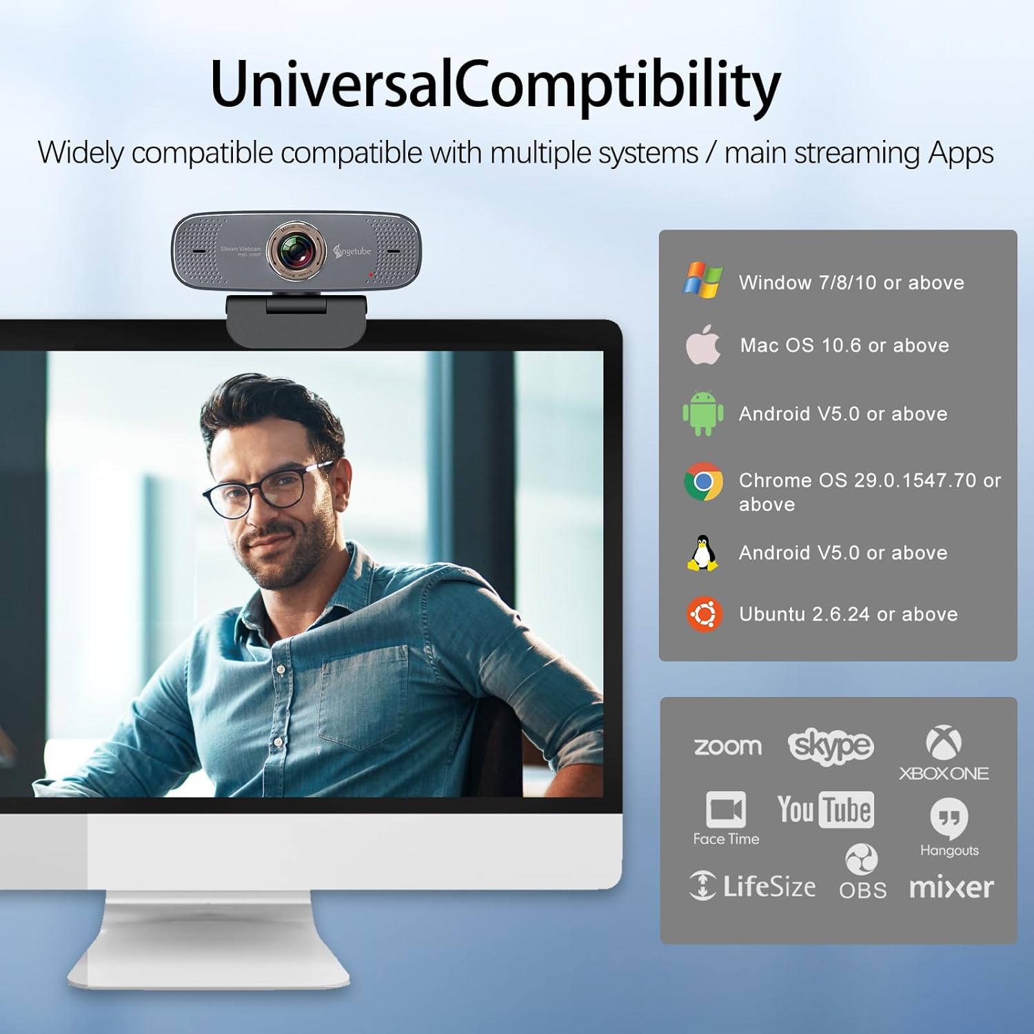 - 【Amplia Compatibilidad de Software】: Cámara web está diseñada con una compatibilidad de software muy amplia, que puede funcionar con Skype, Zoom, Facetime, Facebook, YouTube, PotPlayer y más. Puede usar fácilmente esta cámara web para estudiar en línea, conferencias, juegos, videollamadas y grabación