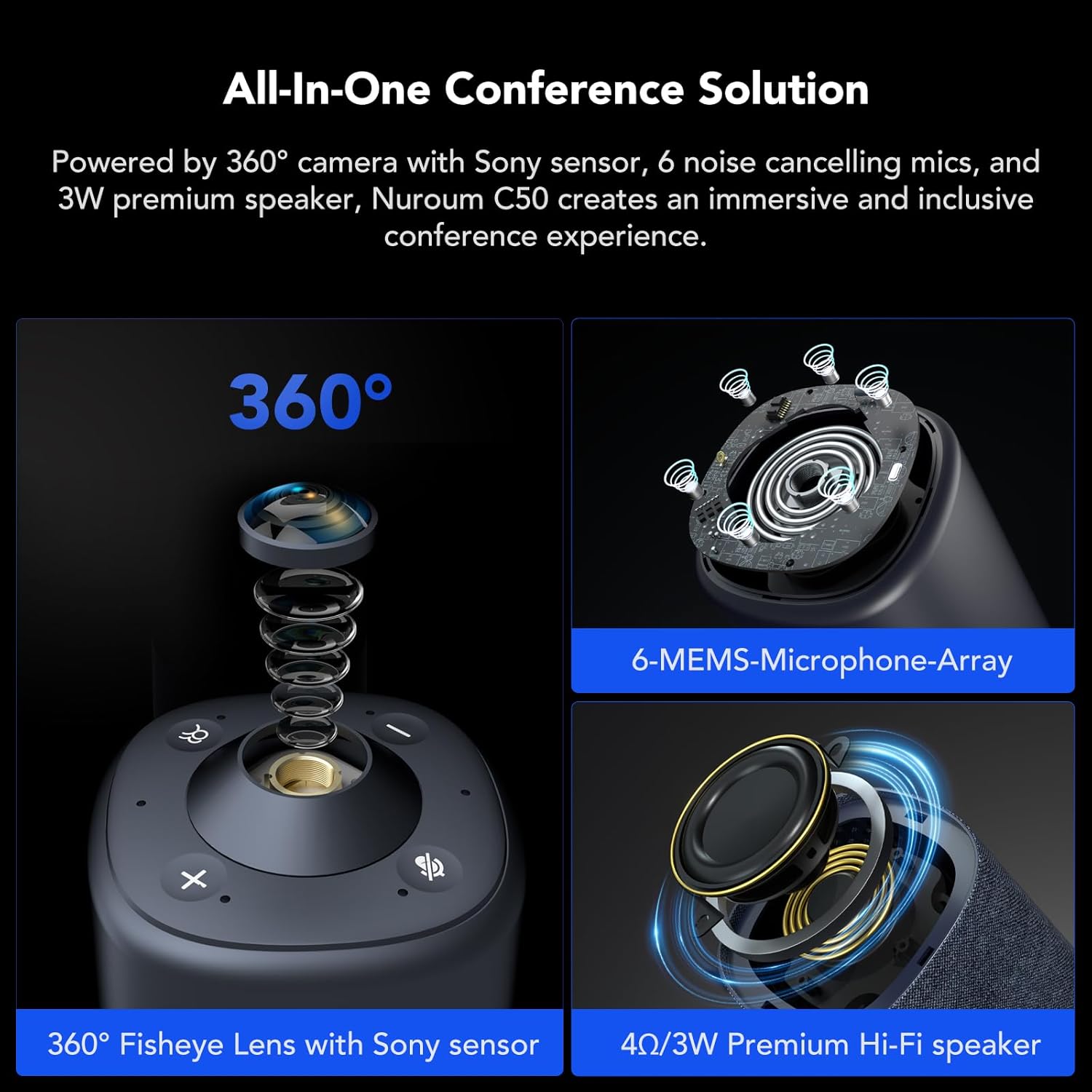 Cuando se trata de videoconferencias, la claridad de imagen es esencial. La camera de 360° para conversaciones naturales de Nuroum está equipada con lentes de ojo de pez HD, lo que ofrece un amplio campo de visión. Esto significa que no solo obtendrás imágenes nítidas al realizar videollamadas, sino que también podrás grabar videos panorámicos en 1080P a 30FPS. Imagínate tener a todos los participantes visibles en la misma llamada, sin perderte ningún detalle. La cámara se coloca de manera fácil en el centro de la mesa y garantiza que todos sean vistos claramente.