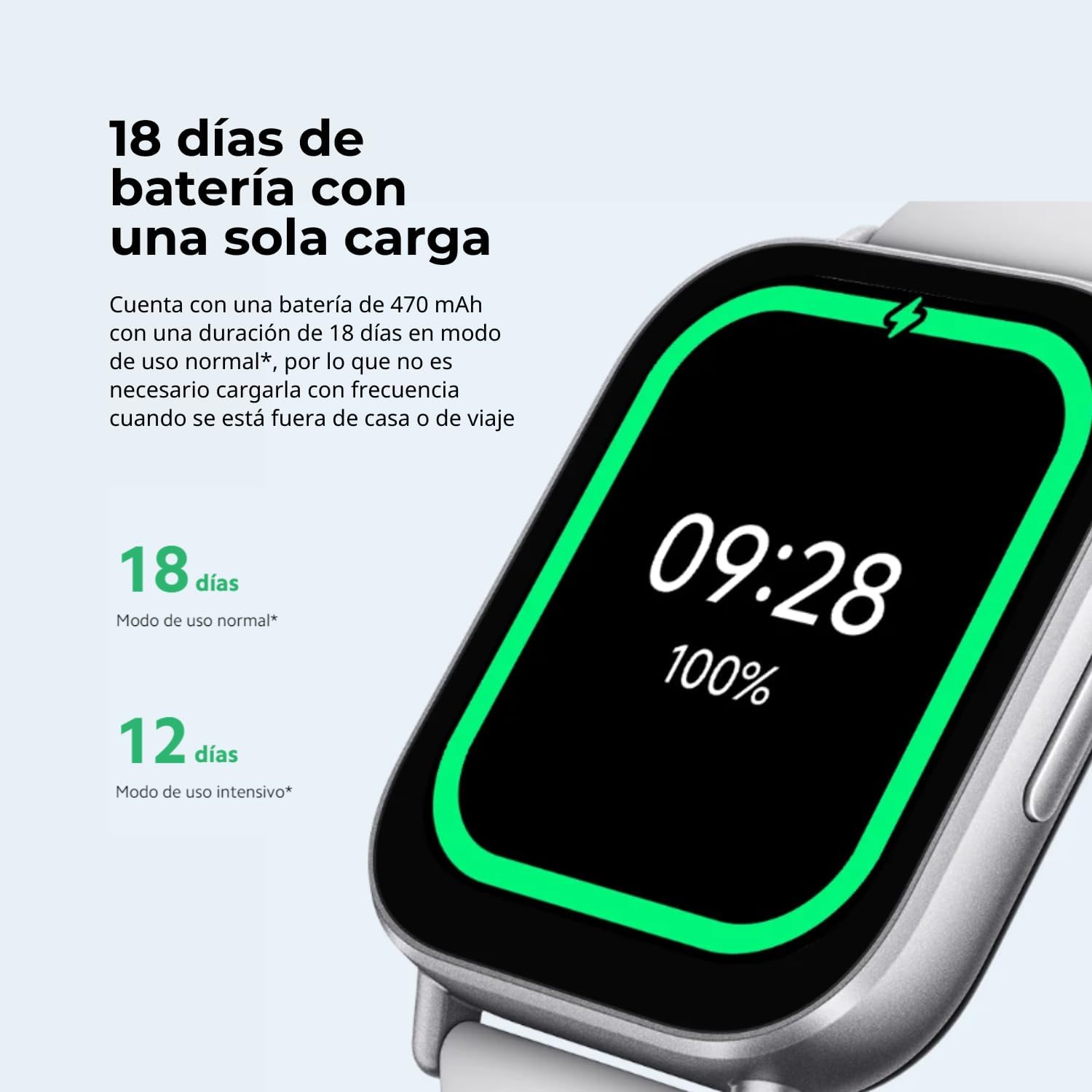 – Autonomía prolongada: La batería de 289 mAh proporciona hasta 18 días de uso continuo, evitando la necesidad de cargarla diariamente.