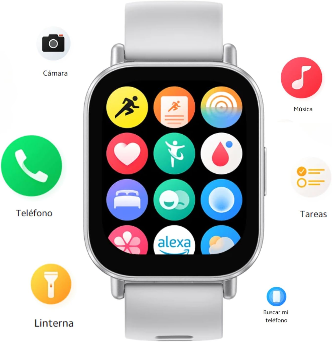 – Salud integral: Dispone de seguimiento continuo de la frecuencia cardíaca, análisis del sueño y monitoreo de SpO2, proporcionando un control constante sobre el estado de salud.