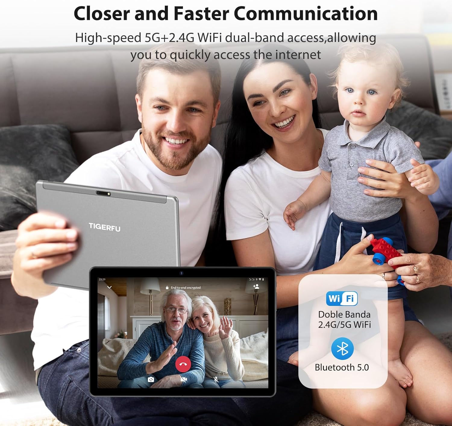Otra característica que me encanta de la Tablet 10 Pulgadas Android 14 es su conectividad. Con WiFi de doble frecuencia 5G y Bluetooth 5.0, siempre tengo una conexión rápida y estable, ya sea que esté transmitiendo un vídeo o conectando dispositivos como auriculares o altavoces. Esto ha mejorado enormemente mi experiencia general, y puedo trabajar o disfrutar de mis momentos de ocio sin interrupciones.