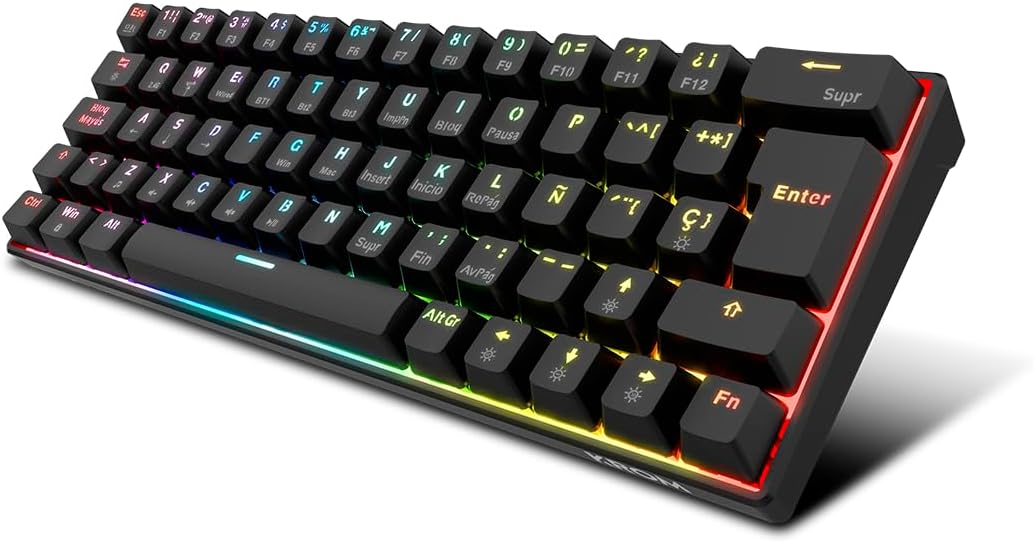 – El formato del 60% puede ser incómodo para usuarios que están acostumbrados a teclados más grandes, ya que faltan teclas como las de función y de navegación.