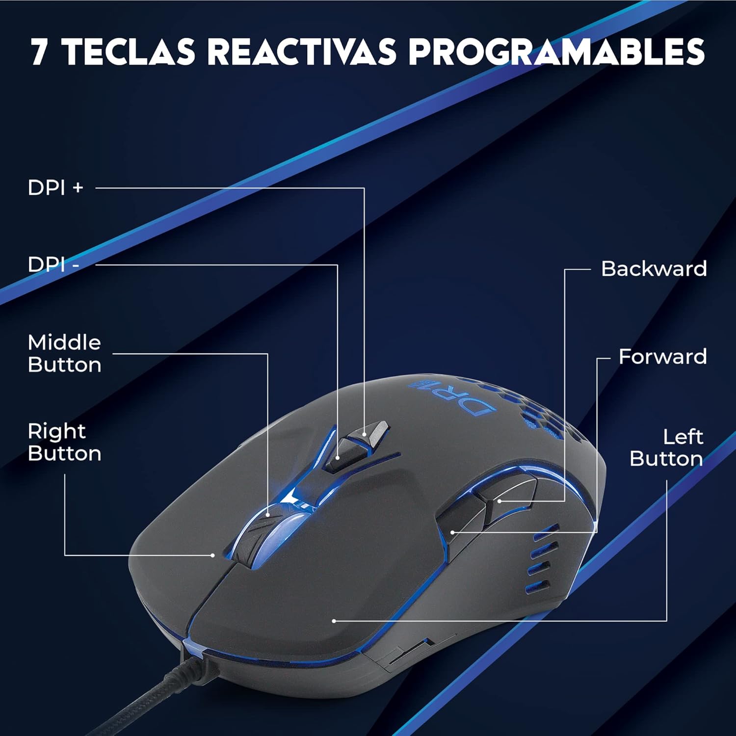 – Con 7 teclas reactivas programables, permite personalizar los controles según el estilo de juego de cada usuario, aumentando la funcionalidad.