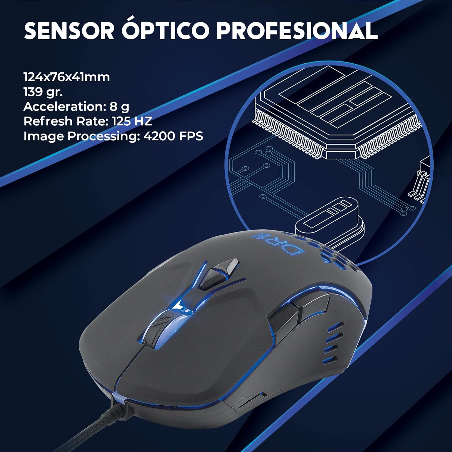 – Su diseño ligero (solo 139 gramos) y ergonomía permiten un agarre cómodo, ideal para largas sesiones de juego.