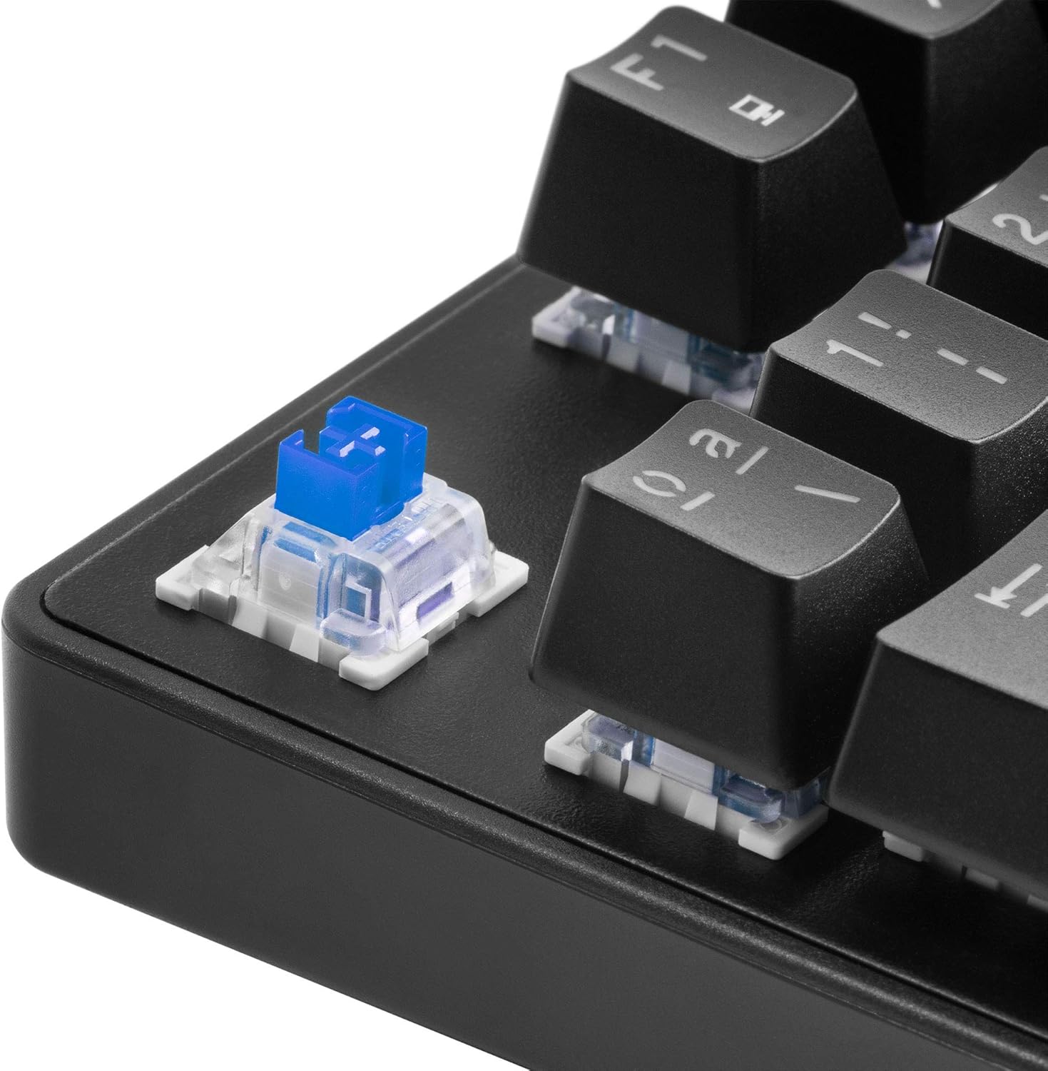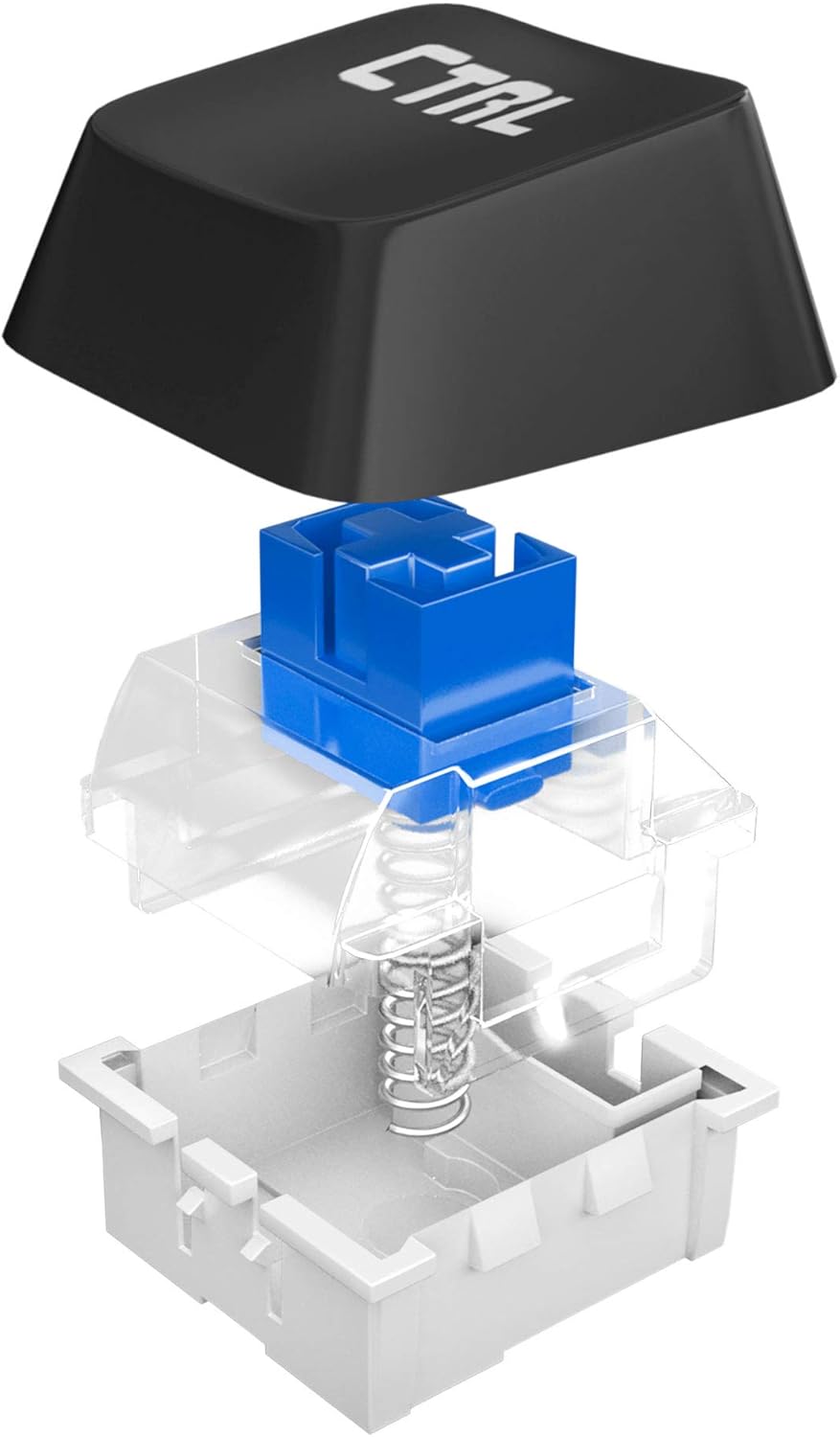 • Mechanical Blue Switch:Los interruptores azules son táctiles y clicky, resistencia extra que entra en acción justo antes de la activación completa, ideal para mecanógrafos que disfrutan de la retroalimentación de sus teclados con un golpe táctil y un clic audible.